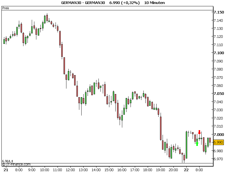 Ich meine immer eine Bewegung respektive Korrektur im Chart zu erkennen, steige ein und sofort "rennt" der Markt in die andere Richtung. Im Anhang so ein Beispiel von heute Morgen, wo ich dachte es geht abwärts.