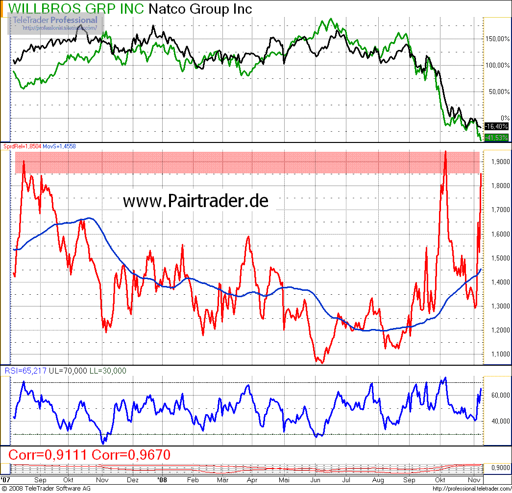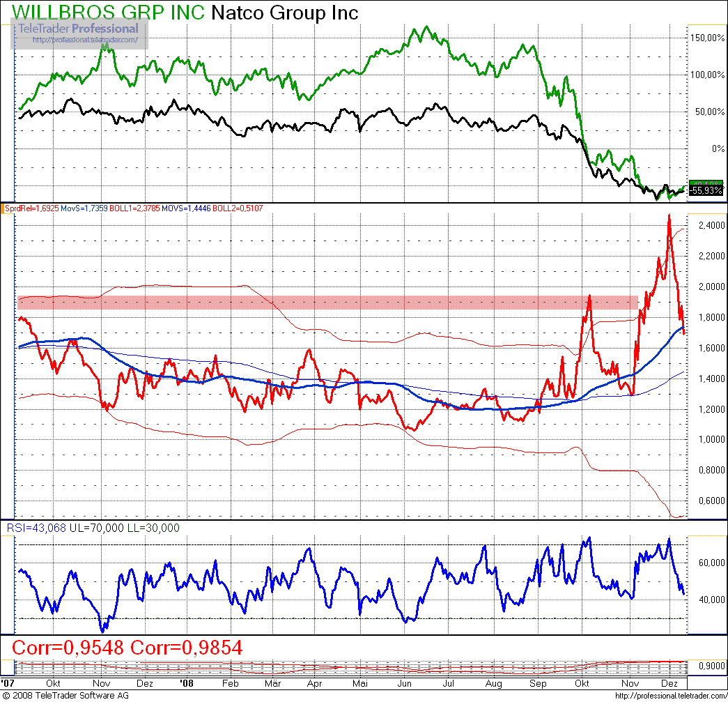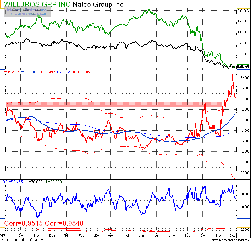 (alle auf der NYSE). Bei beiden Pairtrades (insbesondere bei WG/NTG) kann es zu einem raschen drehen kommen, und somit ein Gewinn von ein paar %-Punkten innerhalb der nächsten Tage. Das größere Potential (knapp 15%) gibt es im WG/NTG Trade. 5-7% sind im NFX/NTG Trade drinnen (Rückkehr zur Durchschnittslinie scheint wahrscheinlich). -