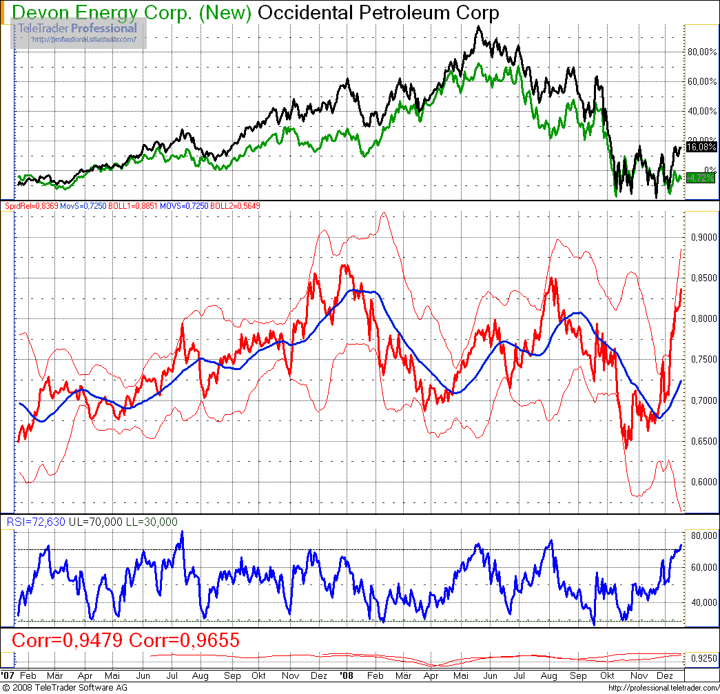 tja, leider ist nichts aus dem kurzfristigen Trades geworden. Beide Positionen haben den Spread noch ausgeweitet, und sind teilweise schon auf historisch hohem Niveau. Somit derzeit beide Positionen im Minus, jedoch die Chance auf das erwartete Drehen des Spreads (wenn auch mit Verzögerung) steigt.