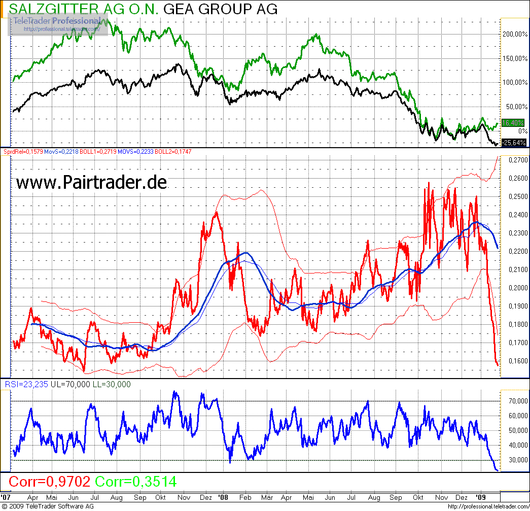 so, wie versprochen einmal eine neue Möglichkeit in einem Aktienpaar. Ich hoffe die Vola wird sich weiter reduzieren um die "intra-day" Schwankungen zu minimieren.