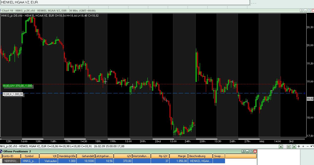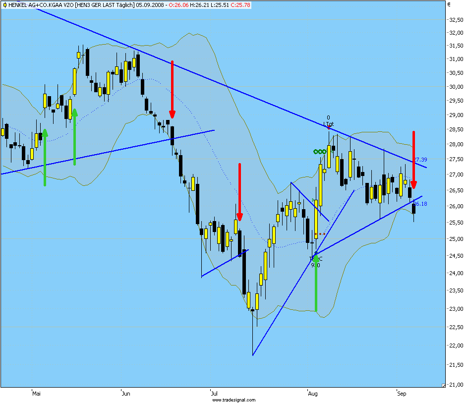 Heute Ausverkauf, raus mit Henkel zu 26,6€Der Autor ist in den besprochenen Werten zumeist selbst investiert. Traden auf eigene Gefahr, Signale sind aktuell großteils experimentell zwecks Challenge "In 30 Tagen zur Trading Strategie".