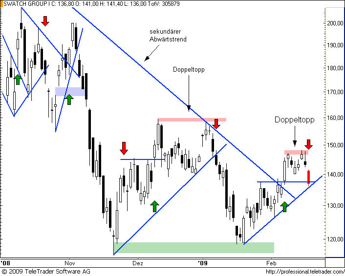 Eine der unrythmischsten und schwierigsten Aktien im SMI hat sich heute endgültig für das Bärenlager entschieden. Es wird spannend zu beobachten sein, ob die oftmals bewährte Zone um 330 CHF erneut Halt geben kann. Oder sogar Ausgangsbasis für eine Gegenbewegung wird. Für Swingtrades sollte man sein Interesse aber angenehmeren Aktien zuwenden.