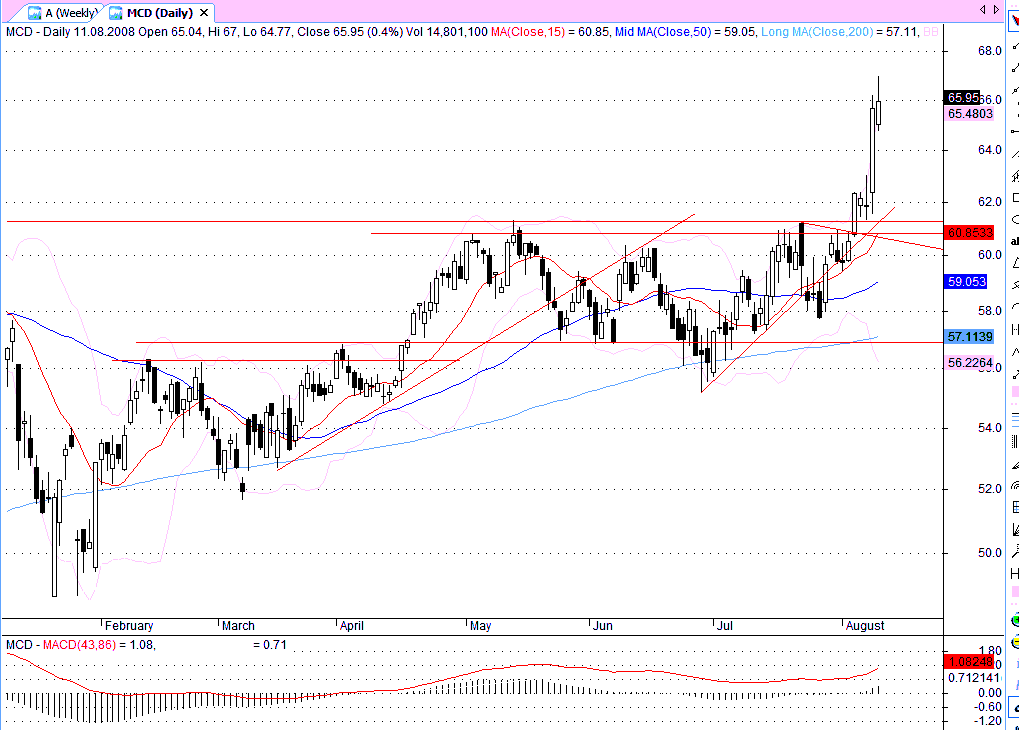 Mein Stop liegt unterm Tagestief bei 63,95. Ich spekuliere trotz Gap nach unten auf neue Hochs bis ende der Woche.