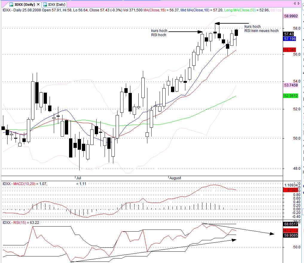 ich habe zwar keine höheren schlusskurse aber doch kursspitzen bei einem fallenden RSI.
