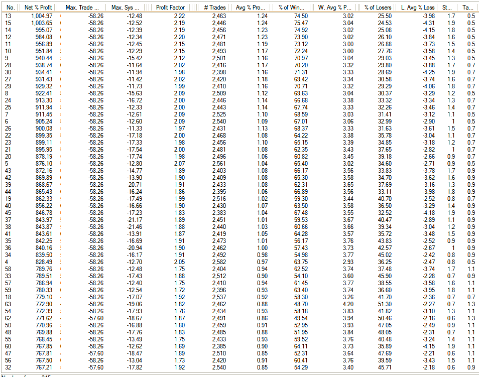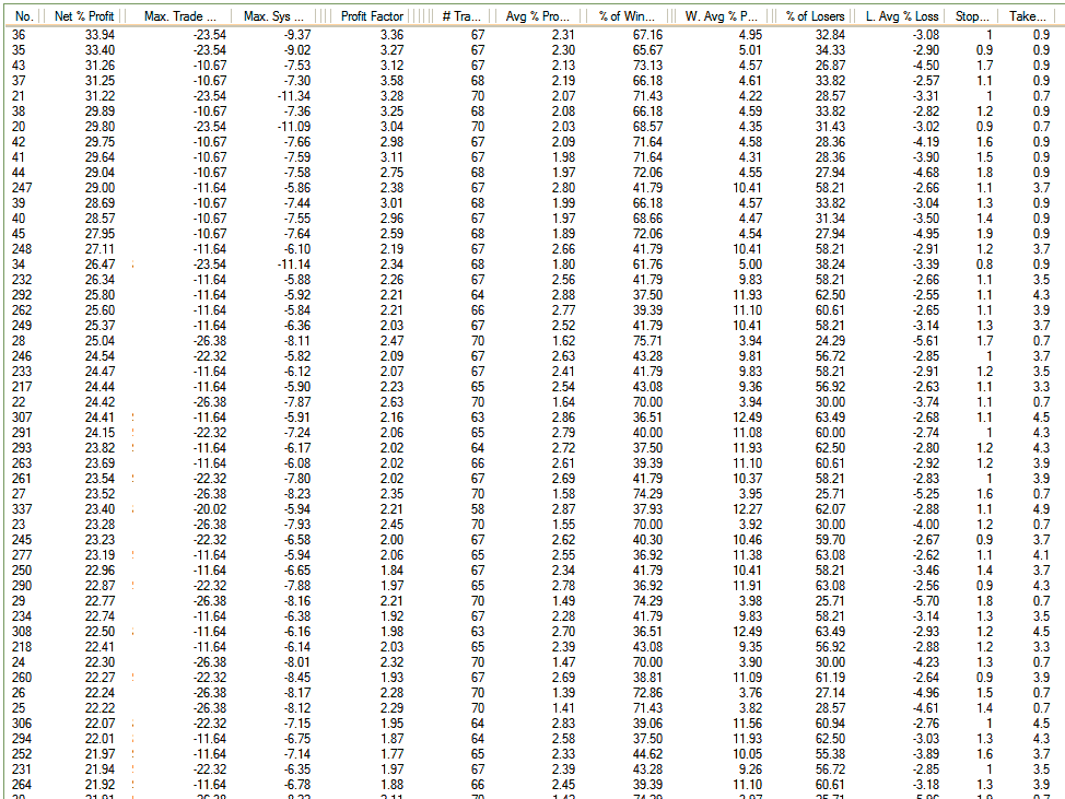 die besten ergebnise waren eigentlich immer mit einem kleinen TP(letzte spalte) für eine hohe trefferqoute.