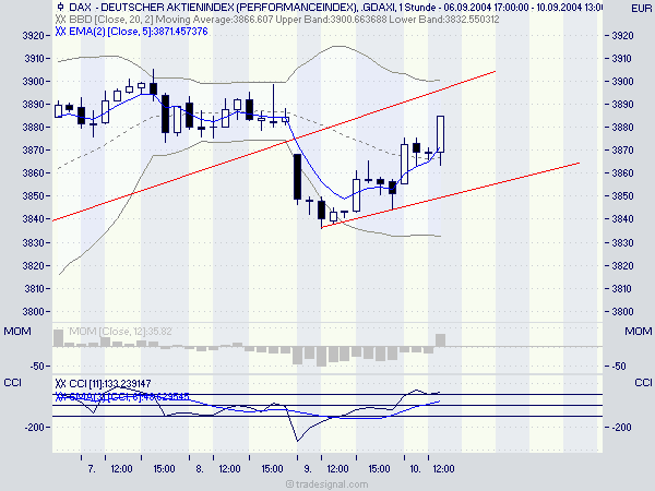 Eine kleine 10 Punkten Bewegung nach unten würde schon für einen Shortsignal ausreichen. CCI und SMA stehen vor der Kreuzung.