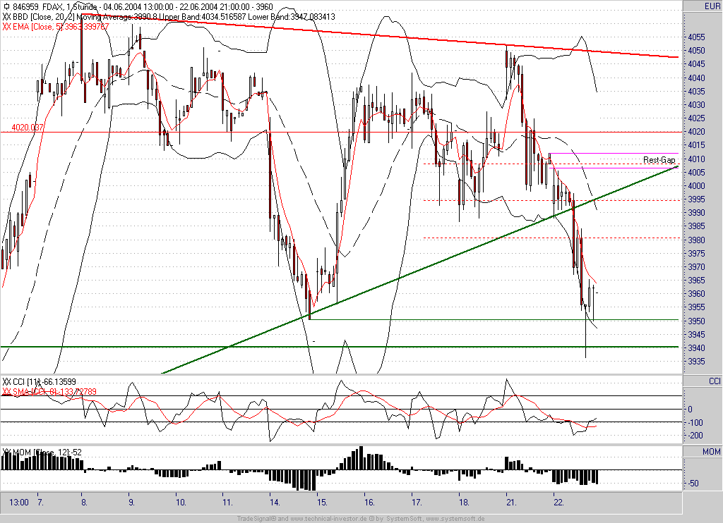 Bin jetzt auch, wie Du bei 3963 Short gegangen! Bis 3940 sollte es ja wenigstens reichen, da ist der nächste Widerstand.