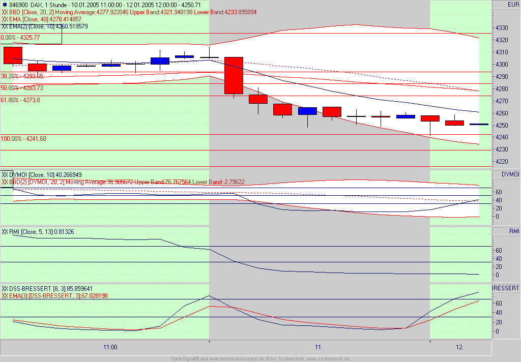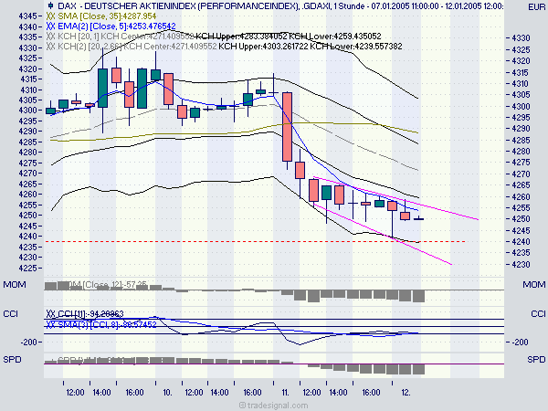 Die 4240 waren schon in den letzten Tagen des vergangenen Jahres eine sehr feste, häufig getestete Unterstützung, wie auch in der vergangenen Woche und heute mit dem Tagestief des gleichen.