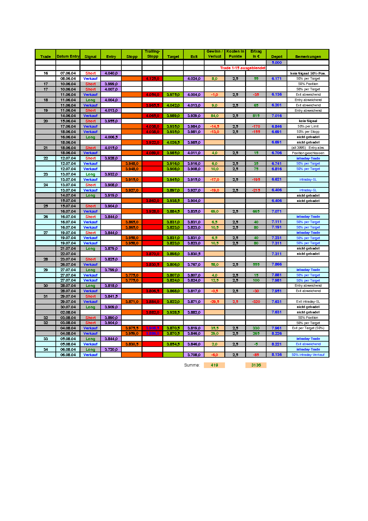 Ich habe den intraday-Trade kurz nach 17:00 Uhr mit +2 Pkt. glattgestellt und den Short-Trade gelöscht.