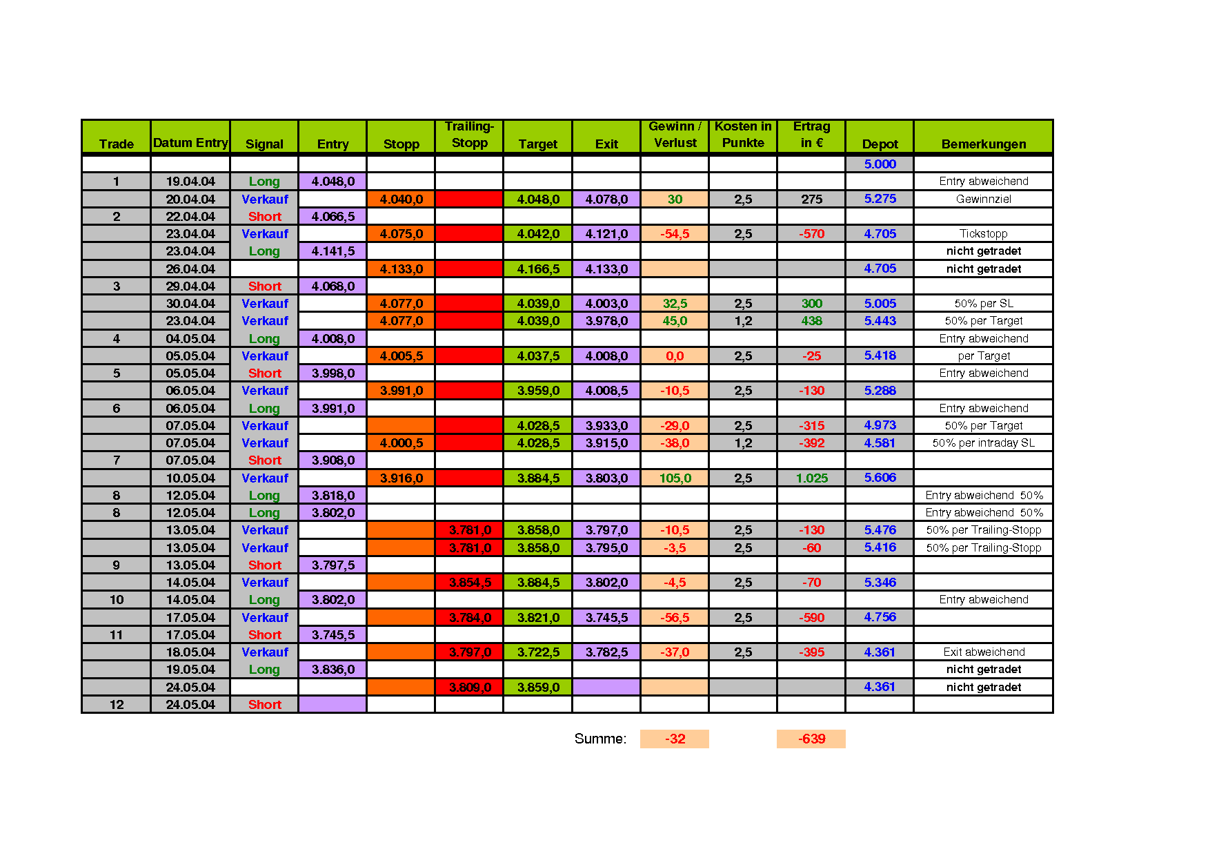 Damit soll erreicht werden, dass bei aufeinanderfolgenden Signalen der Ausstieg "erleichtert" wird. Damit werden zukünftig zwei Stoppkurse angegeben. Die Gesamt-Tradeauswertung hat sich nur unwesentlich verändert.