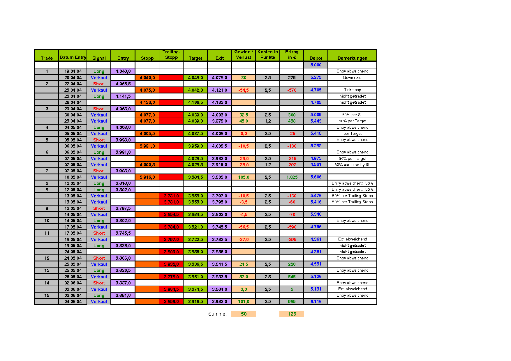 Die Regeln zu den Trades nach den Pivot-Signalen veröffentliche ich gern nochmals oder schicke Sie Dir per EMail.