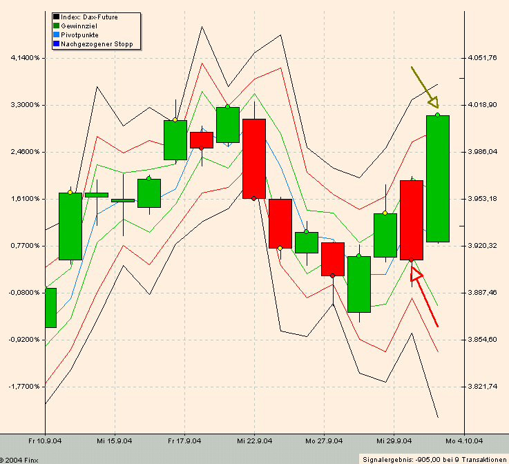 wäre es wichtig, daß die Short-Position nicht unglücklich ausgestoppt wird. Der TS liegt bei 4062,50. Ich wähle als Stoppkurs 4097+, wobei auch 4084+ ausreichen sollten.