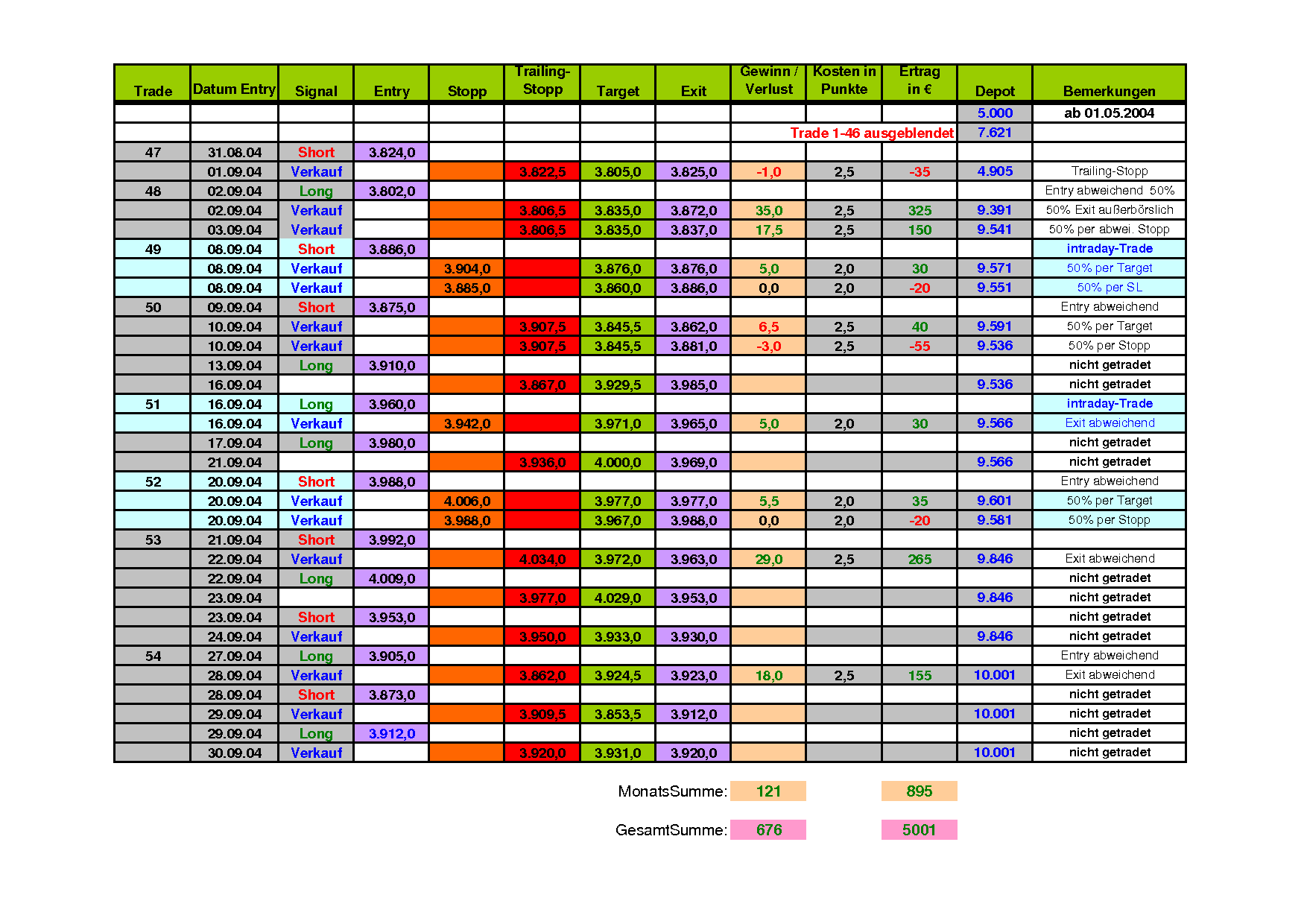 Von der Short-Position wurden 50% exakt bei 3935 verkauft.