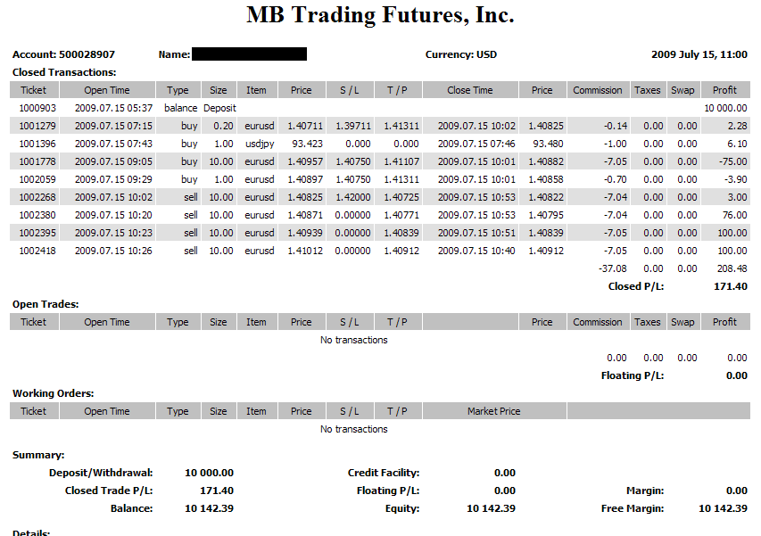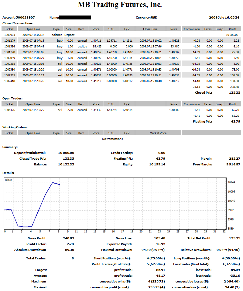 Zuerst wird ein Screenshot eines Statements gepostet, bei dem die Gebühren vertretbar erscheinen, wenn man sich allerdings die Mühe macht die relevanten Informationen auf der HP des Anbieters zu suchen, zu lesen und zu verstehen war schon klar, dass das so nicht stimmen kann, denn bei den Account Statements in MT4 wird in einer Zeile immer die komplette Transaktion dargestellt, also Ein- und Ausstieg aus den Position, dann werden seitens des Anbieters anscheinend sehr zeitverzögert die tatsächlichen Transaktionskosten in Rechnung gestellt -ist die IT bei MB Trading nicht in der Lage diese realtime zu managen?- dann ist plötzlich zu sehen wie teuer dieser Anbieter in Wahrheit ist.