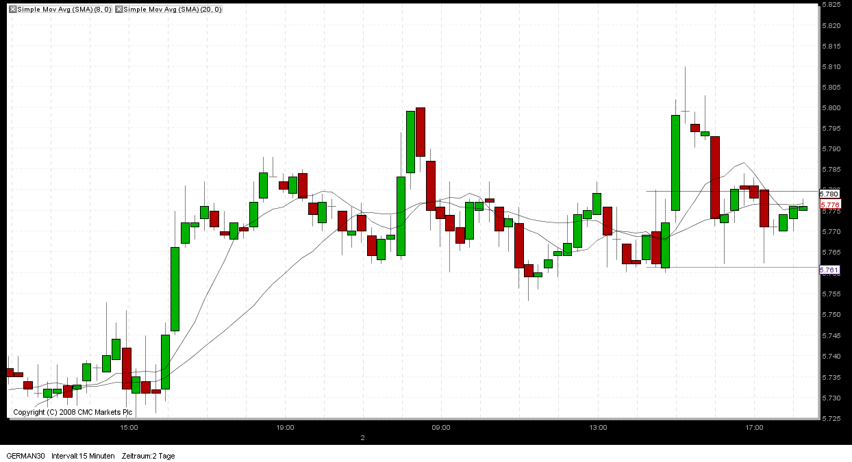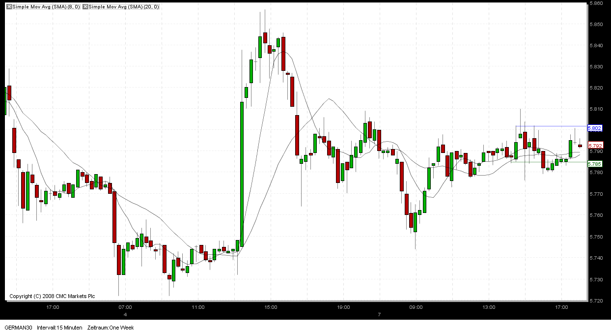 Heute kommich doch etwas durcheinander, hast du deine Range vor 15:00 h eingezeichnet.Wolltest du nicht die 3 5 er Kerzen ab 15:30 h bis 15:45 h als Range nehmen und dann ab 15:45 h das Über oder Unterschreiten per Limitorder ( so wird sie bei RBS geannt ) handeln.