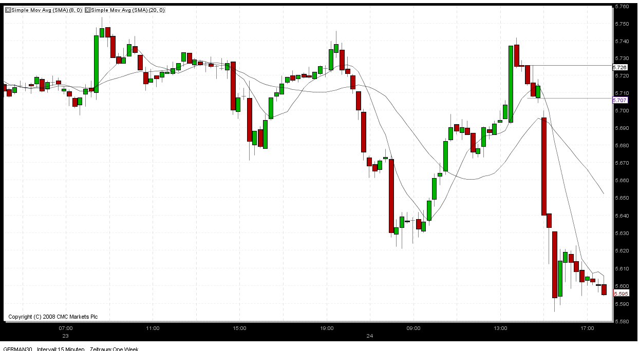 LONG-Trade wurde punktgenau ausgelöst bei 5668 Punkten und rauschte sofort in den SL bei 5635 Punkten.