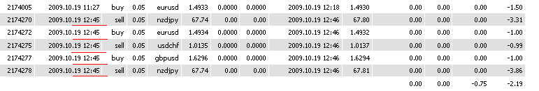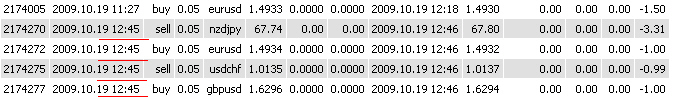 Es könnte sein, das er beim Trade selbst die richtige Uhrzeit angibt, aber wenn man auf Report geht, sich ein Fehler eingeschlichen hat. Alles ist möglich. Aber dein Code war witzig...hehehe Was mich, wie bereits erwähnt, stutzig macht, das es nur bei der Uhrzeit 12:45 auftaucht und sonst nicht. Die Wahrscheinlichkeit das sich die Tippse immer um 12:45 vertippt, ist sehr sehr gering...