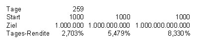 Aber vllt. mache ich das ja mal. Also aus 1k eine Million machen, Zeitraum 20 Jahre oder so. Da könnt ihr mir beim Altern zugucken. Abgemacht?