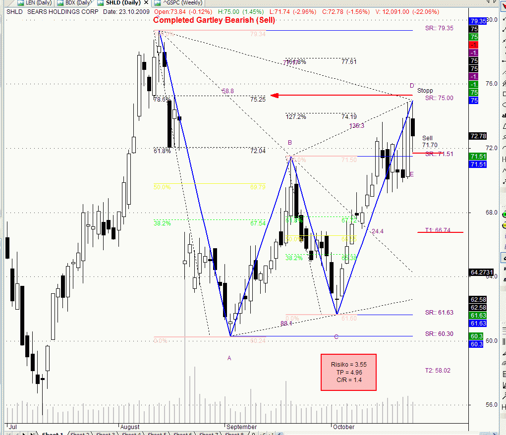 Ein Problem bei dem Gartley hier sollte sein das C-D nicht gleich A-B ist.
