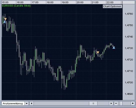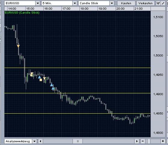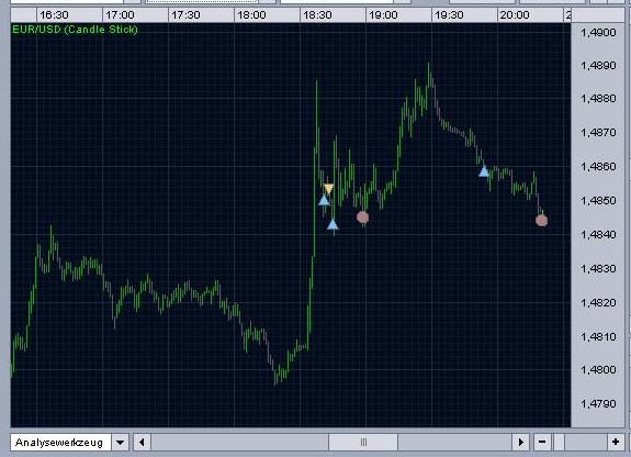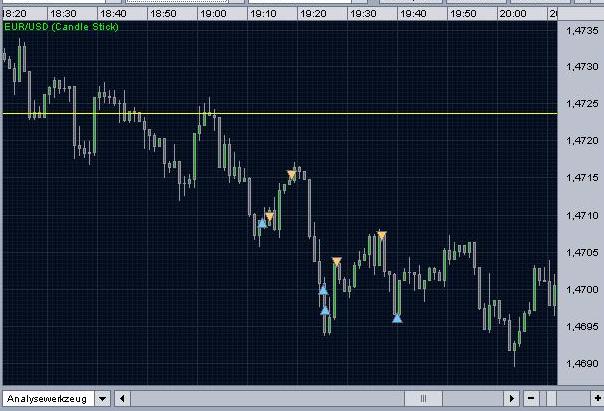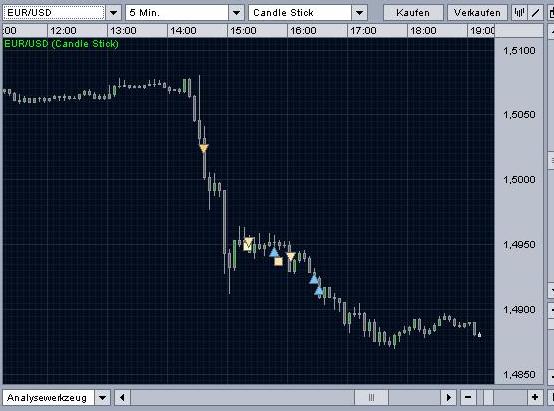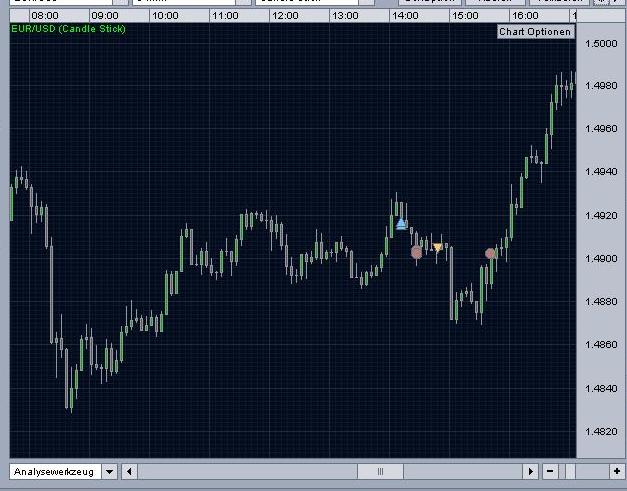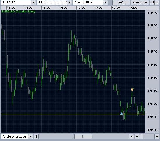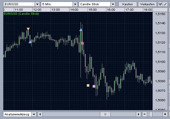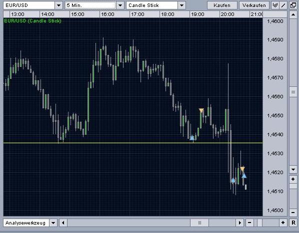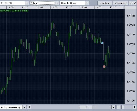 Da es am Freitagnachmittag nach Wirtschaftsdaten häufiger zu längeren Trends kommen kann, hielt ich diesmal von vornherein sehr hohe Gewinne für möglich (>100 Pips).