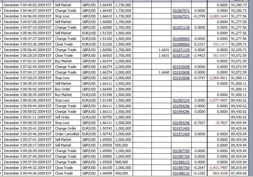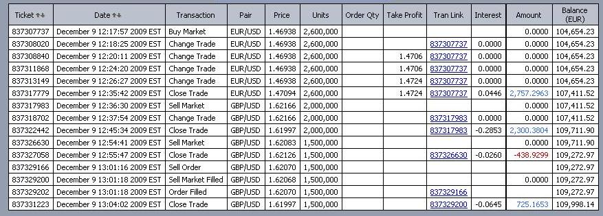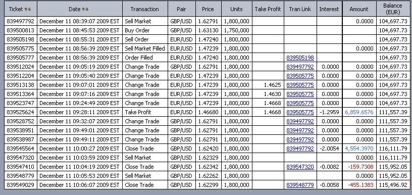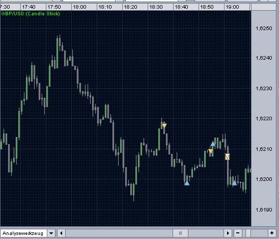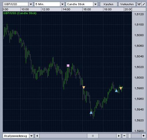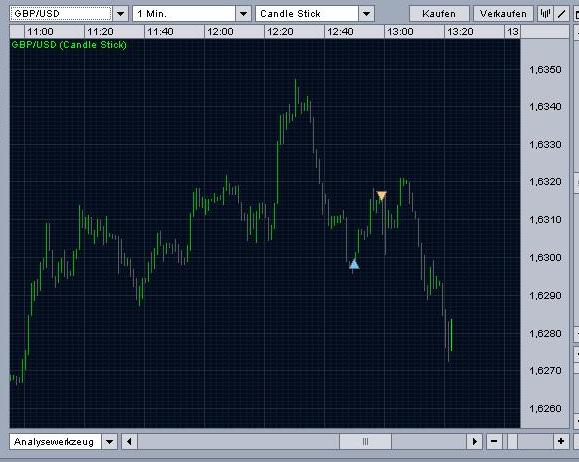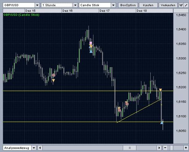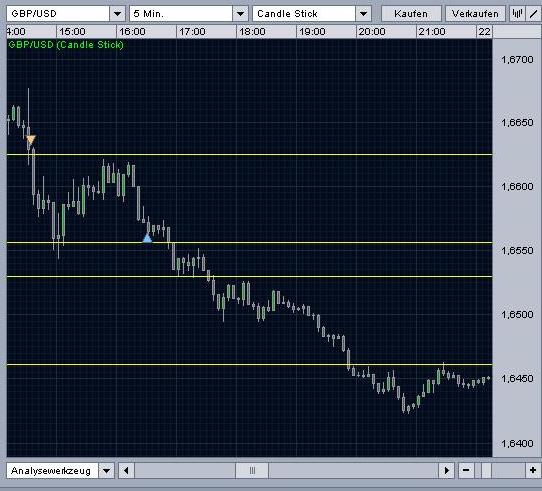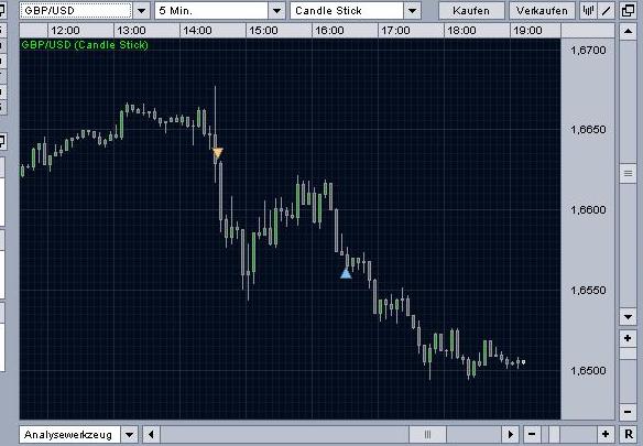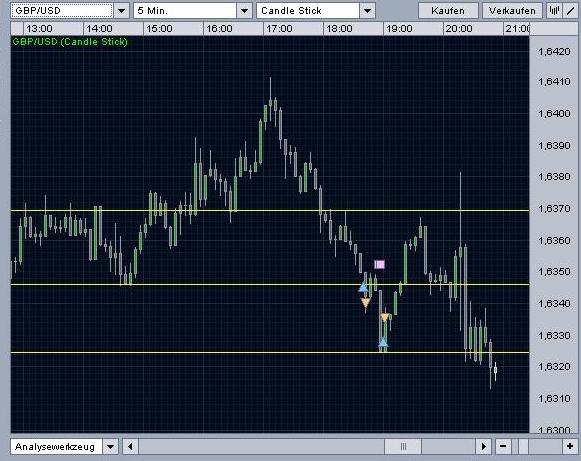 vorhin lag beim GBPUSD eine größere Bewegung "irgendwie in der Luft" und ich setzte glücklicherweise auf die richtige Richtung. Zusätzlich wurde noch eine EURUSD-Position eingestoppt. Aufgrund der fortgeschrittenen Zeit glaubte ich nicht recht daran, dass die vermutlich bedeutenden Unterstützungen unterschritten würden und verkaufte an diesen Punkten (+100 GBPUSD