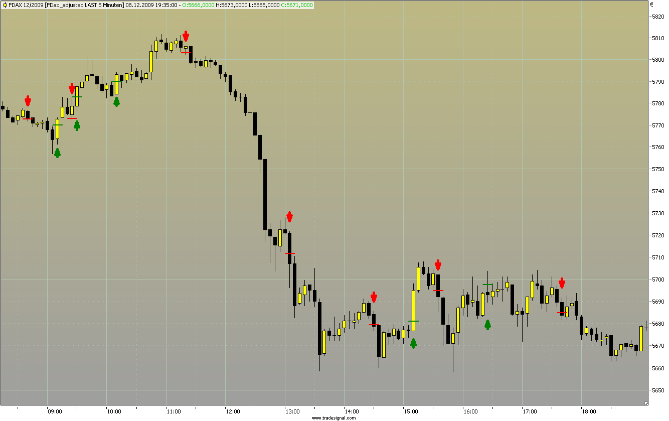 Kommt nicht oft vor, dass ich im 5min-Chart eine Trefferquote deutlich über 50% bekomme. Normal richtens nur die durchschnittlich viel höheren Gewinner. Läuft aber gut heute, kurz vor US-Eröffnung gibts einen neuen Longtrigger auf 5.665.