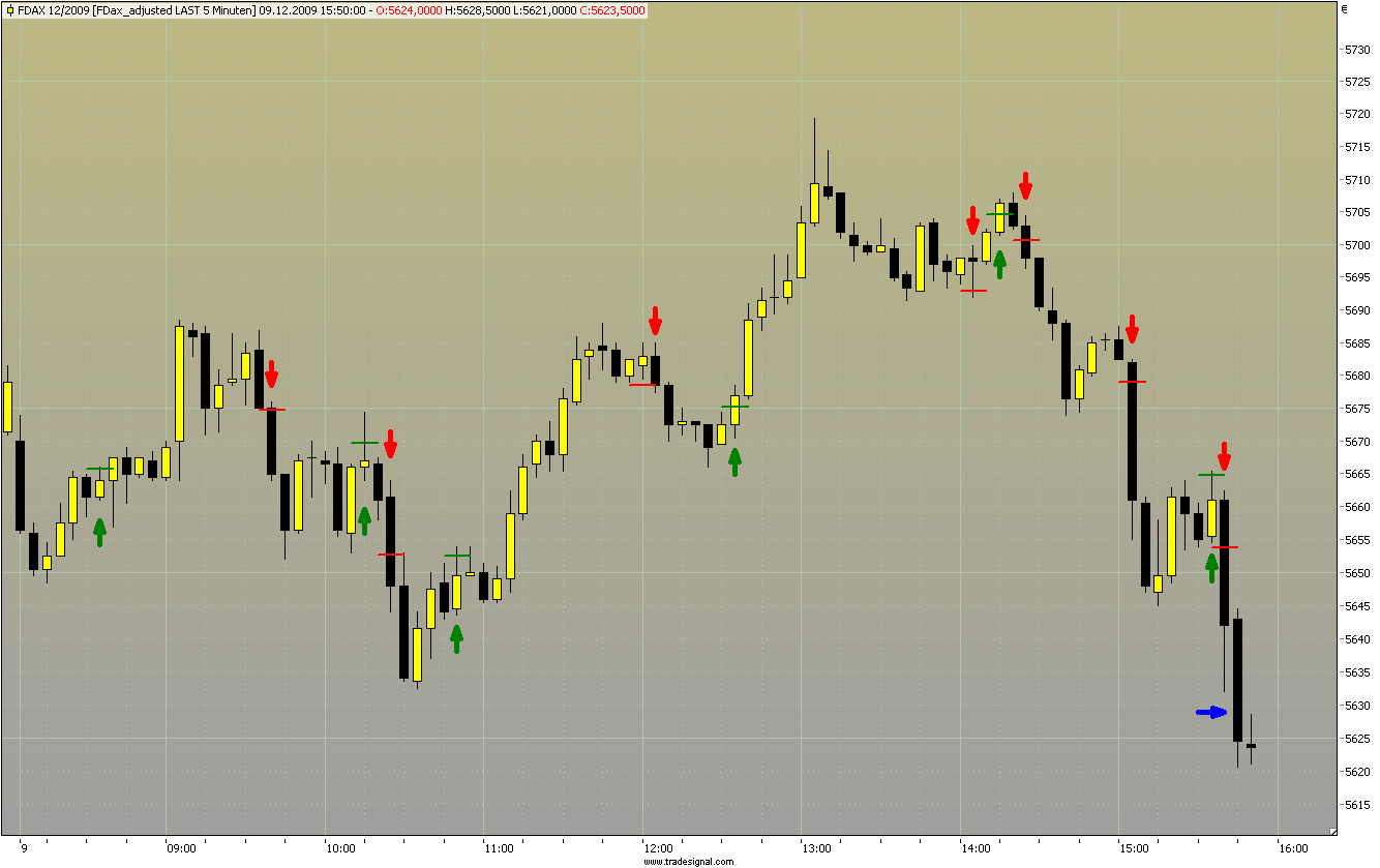 War heute wieder ein schöner Tag für den 5min-Chart. Von den 12 Signalen bin ich mir nur bei zweien unsicher, ob ich die in der Praxis exakt so umgesetzt hätte. Der Rest steht bombenfest, freu mich schon auf die weiteren Arbeiten mit diesem Zeitfenster. Aus Trends wie dem ab 12 Uhr muss man ja erstmal ein schönes Stück Kuchen rausschneiden, dann kann man sich auch locker die vielen kleinen Verlierer leisten.