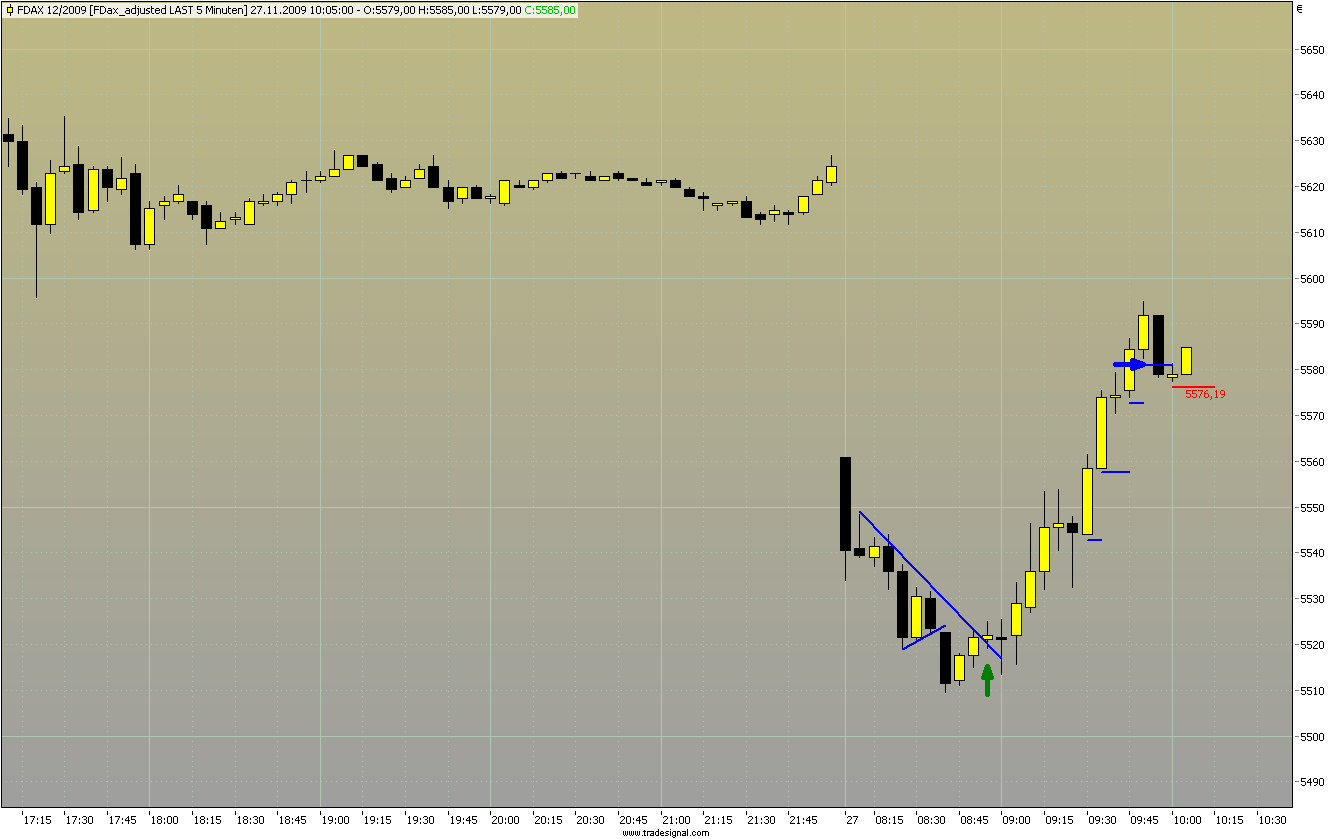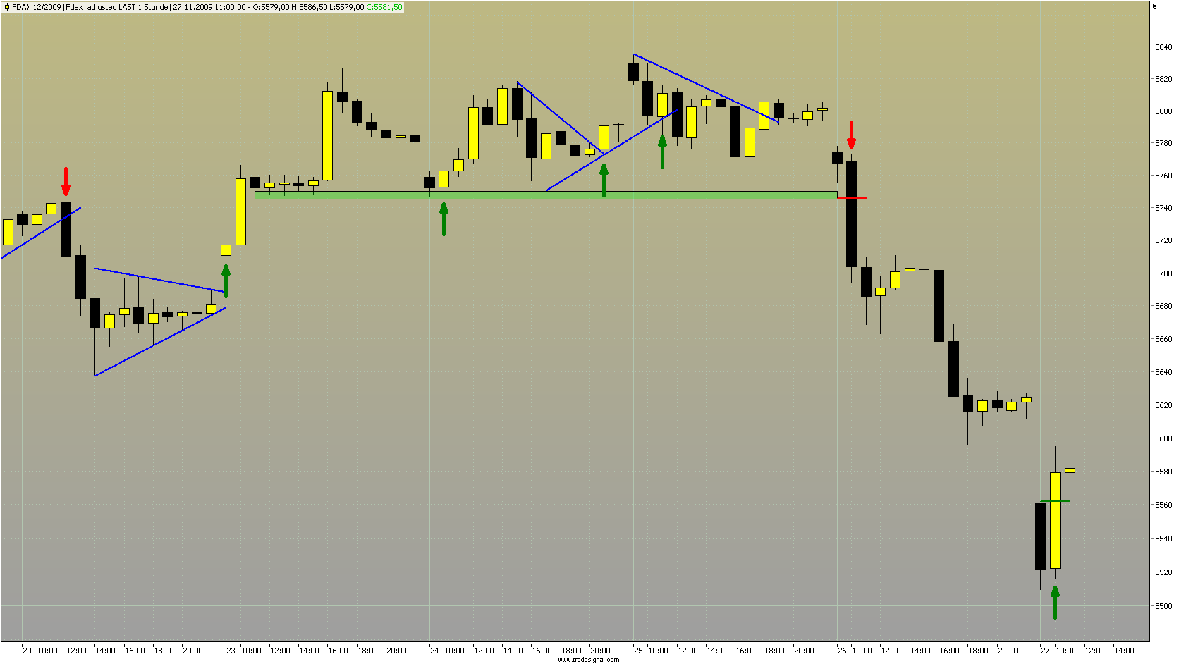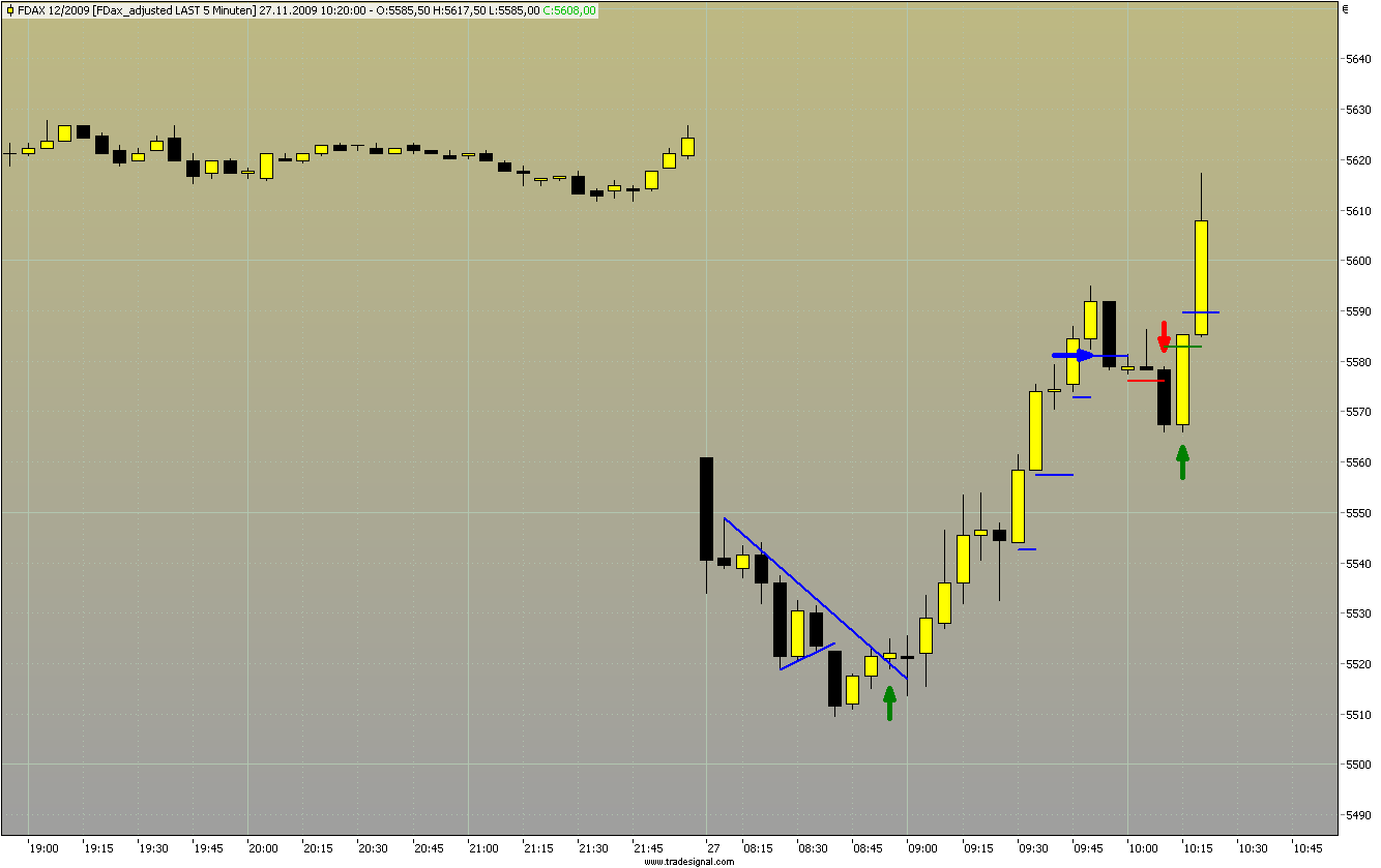 Habe wieder Blut geleckt mit neuen Setups, die mir großen Spaß machen. Von Trendfolge ist dabei nicht mehr viel zu sehen, gerade darum macht es wohl so viel Fun. Am Besten lief das im Backtesting im Stundenchart. Volatile Phasen wie heute Morgen bzw. Vormittag sind aber auch im kleineren Zeitrahmen sehr reizvoll. Eine Strategiebeschreibung gibt es (noch) nicht wirklich. Meine Absicht ist einfach, dem "Smart Money" zu folgen. Markante Punkte zu finden, an denen viele Stopps greifen bzw. sich das große Geld (Instis) wieder einschaltet. Aus den Signalen der letzten 3 Monate lässt sich ein durchschnittliches CRV von 3 erwarten. Jetzt muss sich das nur noch in der Praxis beweisen können, was liegt da näher als das Geschehen gleich zu posten. Auch wenn die Strategie noch in den Kinderschuhen steckt, diszipliniert man sich so noch eher.
