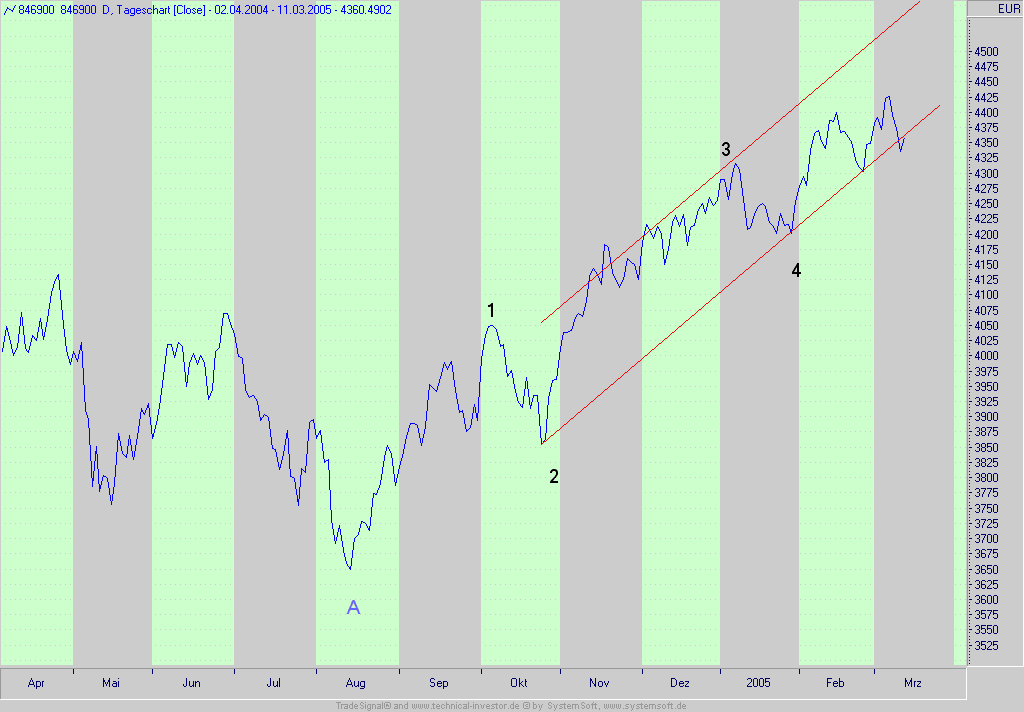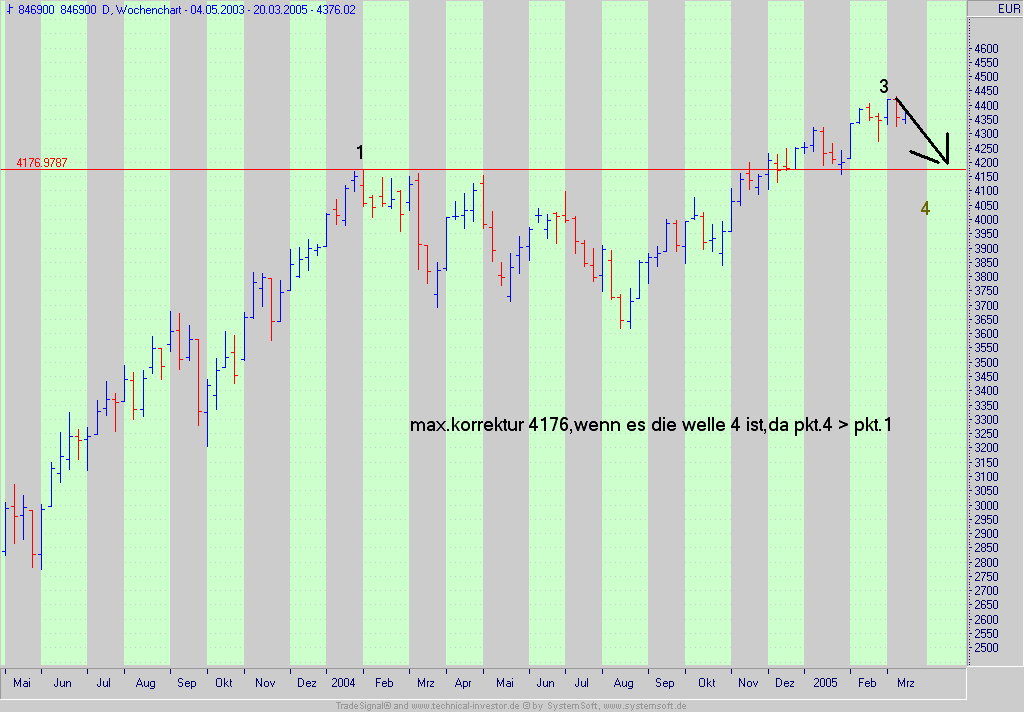 wenn es welle 4 wäre,würde die min.korrektur 38.2 % R T bei 4123 liegen.das bedeutet < pkt.1.
