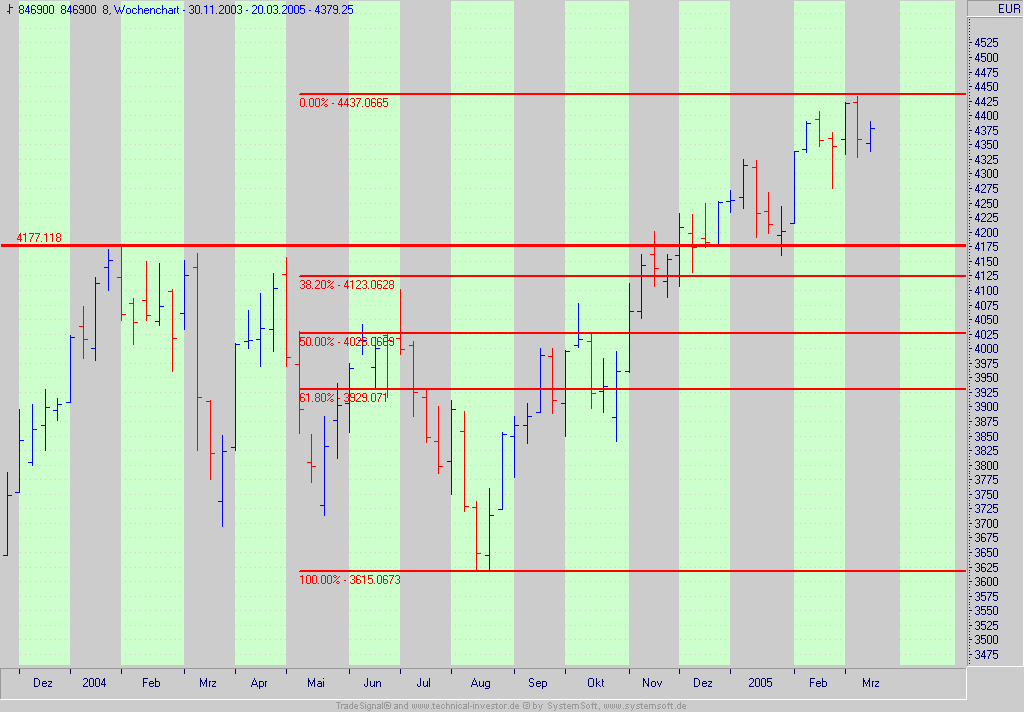 Bis jetzt hielt es punktgenau am 38% RT schwarz 4330, brechen wir diese Marken im Tageschart werden wir höchstwahrscheinlich dann das RT 61,8% bei 4265 anlaufen und drehen, oder weiter runter was ich nicht glaube.