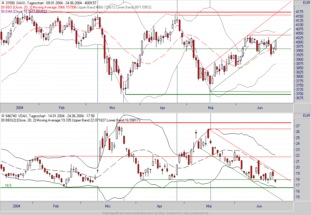 2. Sollte der VDAX seine Unterstützung bei 17,88 aufgeben, wird es zu einer weiterführenden Rally im DAX kommen, was die Mehrheit der Marktteilnehmer auf dem falschen Fuß erwischen würde. Deshalb favorisiere ich diese Variante.Dieser Beitrag wurde bereits 7 mal editiert, zuletzt von „Exlibris“ ()