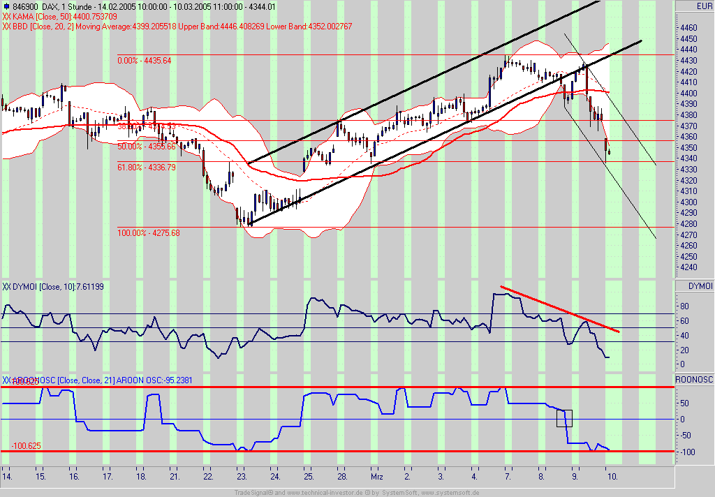 Erst mit einem Break der 4346 sollte man von einem (Zwischen)High im Dax ausgehen.