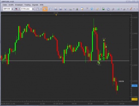 Trade#8 im Cable war ebenfalls eine Shortidee. Mit 1 Lot und einem I-Stopp von -15 Pips konnte ich mit einem halben Lot schnell einen kleinen Gewinn realisieren. Der Rest ging aufgrund der Chartsituation schnell Breakeven und wurde ausgestoppt. Im Nachgang leider die falsche Entscheidung! Ich fand in Folge aber auch keinen Reentry der meinem Trading-Plan gefolgt wäre....