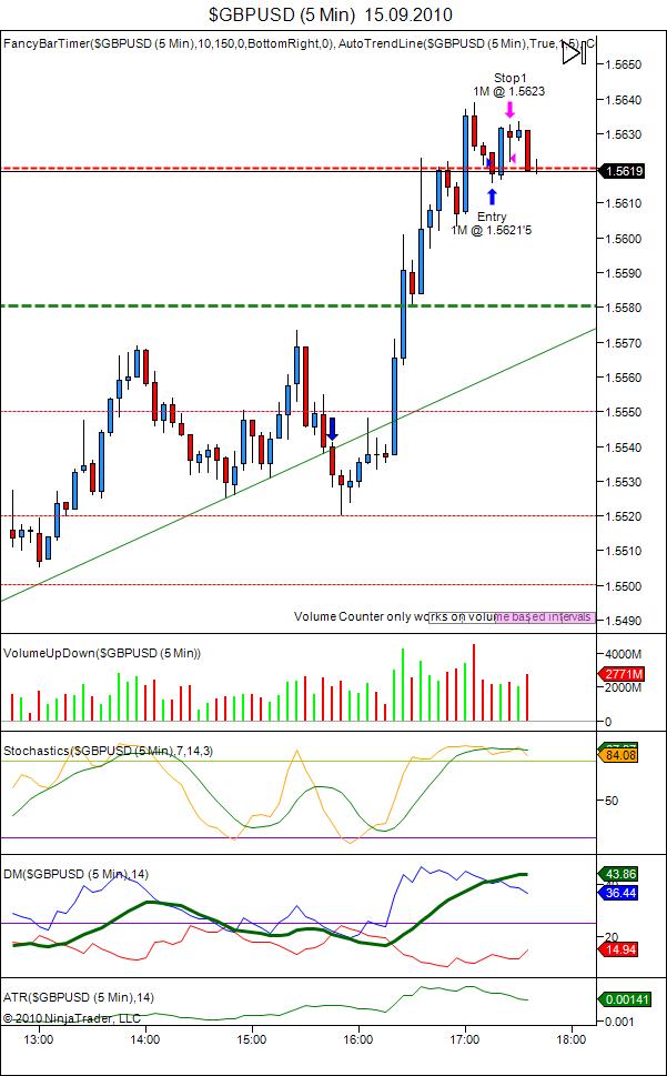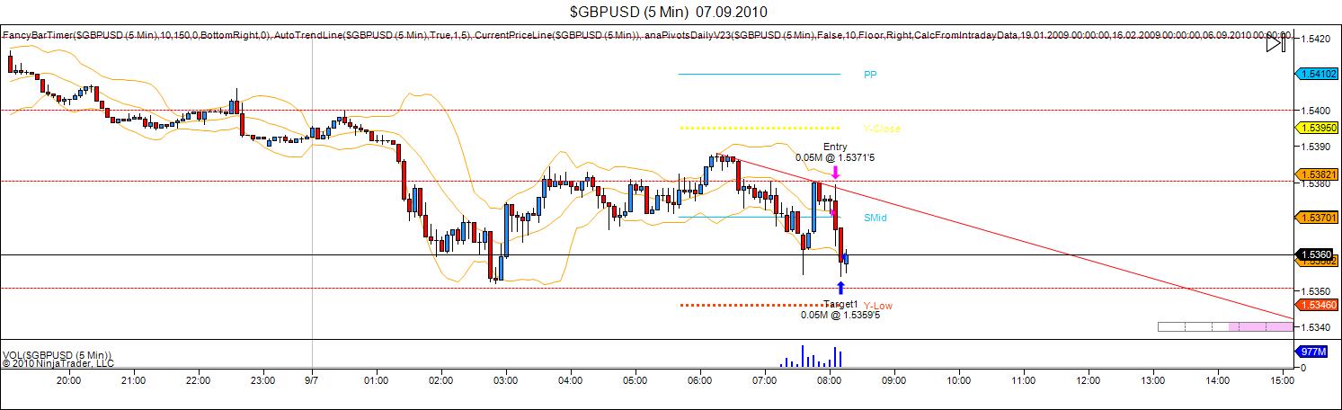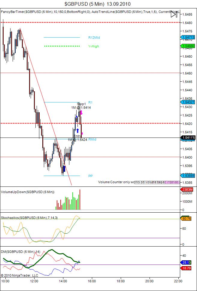Hier war erneut ein Wiederstand einer Preismarke der Grund weshalb ich den Trade machte. Leider wurde mein Ziel (1. Ziel = Midpoint-Pivot, Ziel 2 = letztes Tief) verfehlt und ich liess mich bei 2 Pips im Plus ausstopen.