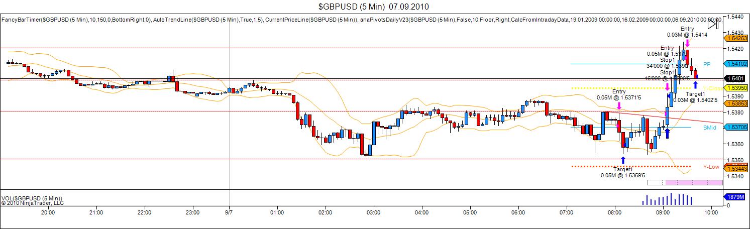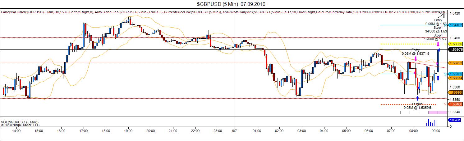 Ich habe meine Arbeitszeit verändert und beginne nun um 5 Uhr morgens. Da ich in der Zeitspanne von 5 bis 7 Uhr nie gehandelt habe, startete ich mit dem Demoaccount. Erster Trade war ansich gar keiner und ich war etwas verwirrt weil ein 10 Lot Entry aufgeteilt wurde in zwei 5 Lot Häppchen. Macht aber Sinn.