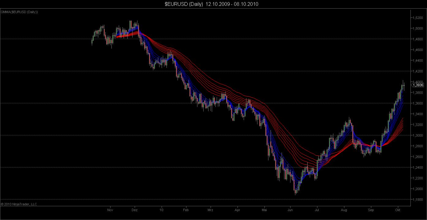 guppy charts (laengere emas in den beiden short- und longtermgruppen - diskreter aufbau der gruppen)