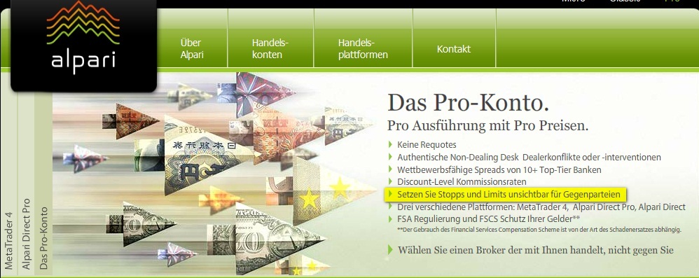 Habe da etwas interessantes entdeckt bei einem Alpari Pro Konto für Forex: