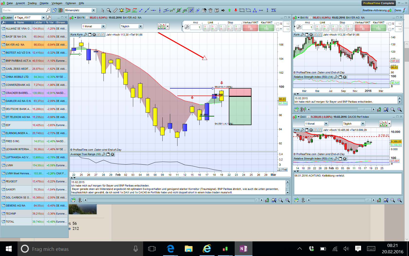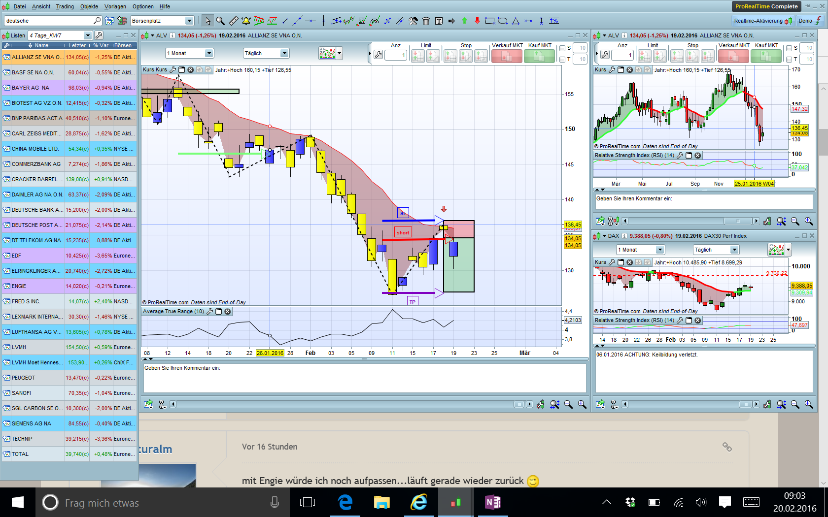 Dieser Trade läuft noch. Wenn der Dax am Montag früh hoch gehen sollte zieh ich meinen SL bei der Allianz auf Einstand. So verhindere ich all zu große Fehltrades in meinem Depot.