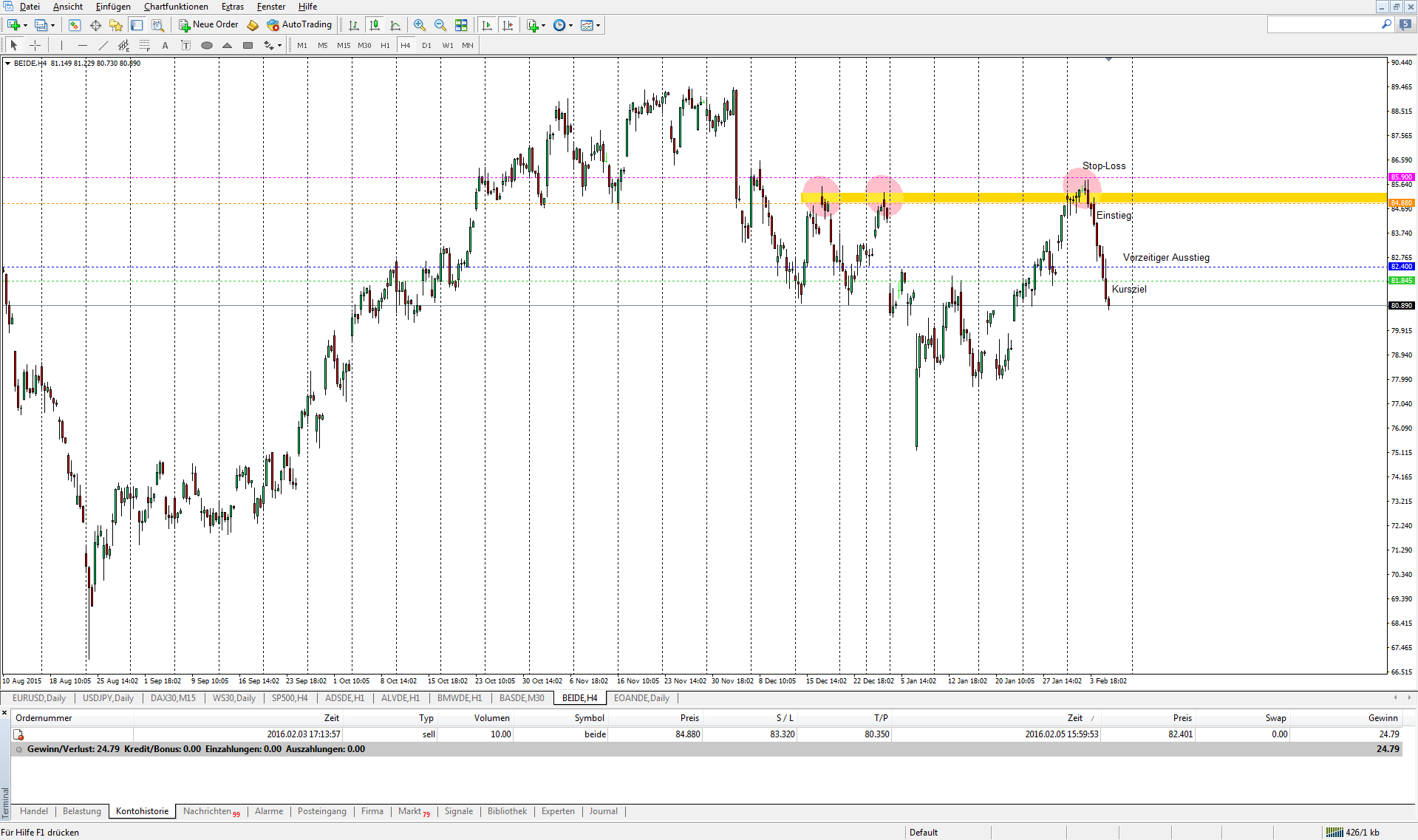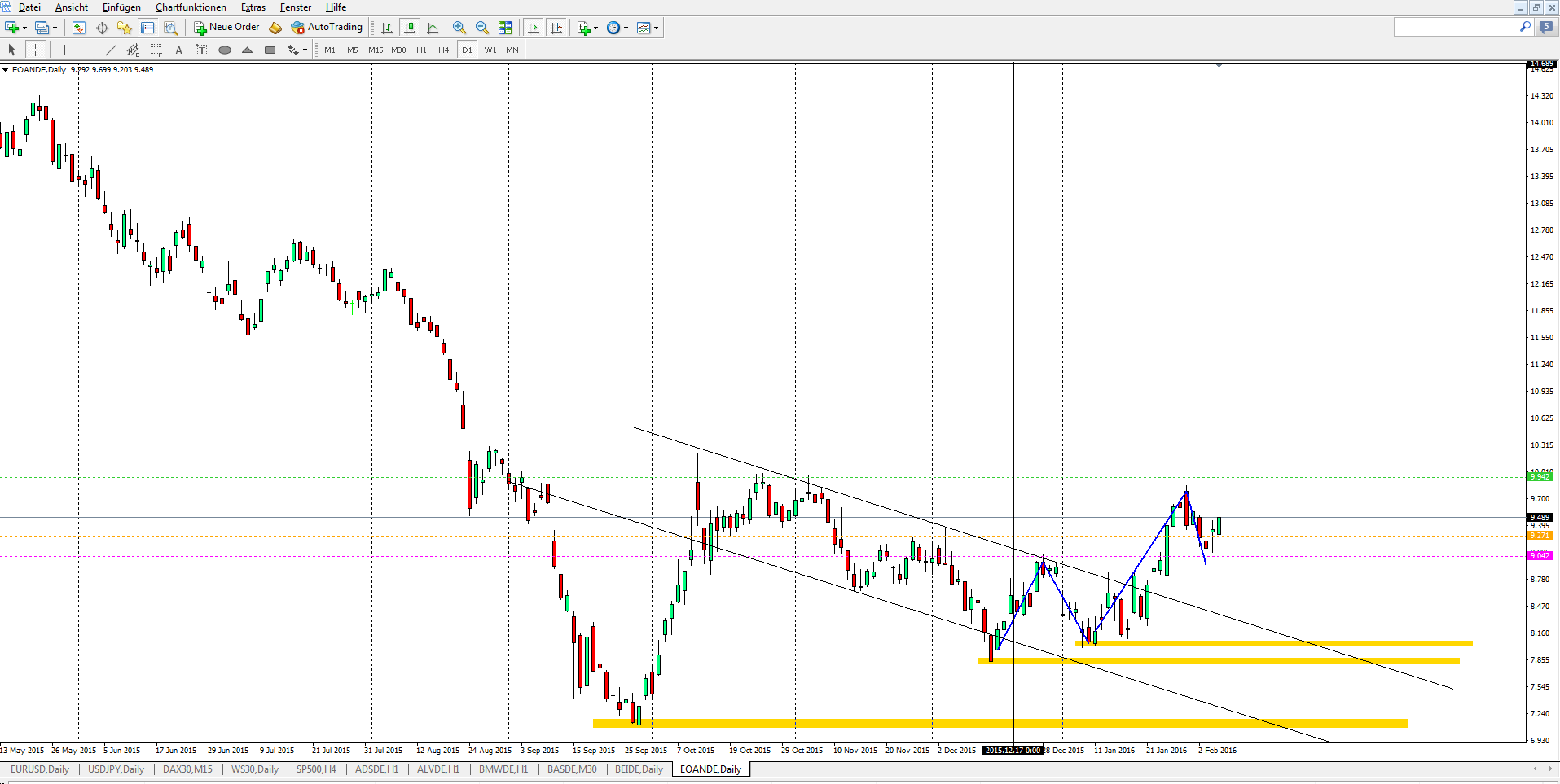 Danke, schade, hatte ebenfalls bei Reuters nachgesehen gehabt. Dann schwenke ich auf Thyssen um. Sieht zwar im MT5 nicht bearish aus, ist auf Xetra aber knapp der Fall, bzw. ein bearisher Doji.