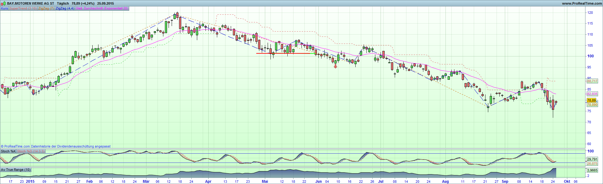 Schau dir doch mal Beiersdorf an. Die Signalkerze hat zwar einen etwas längeren unteren Schatten, aber das kann man ja auch als bullisches Signal werten.