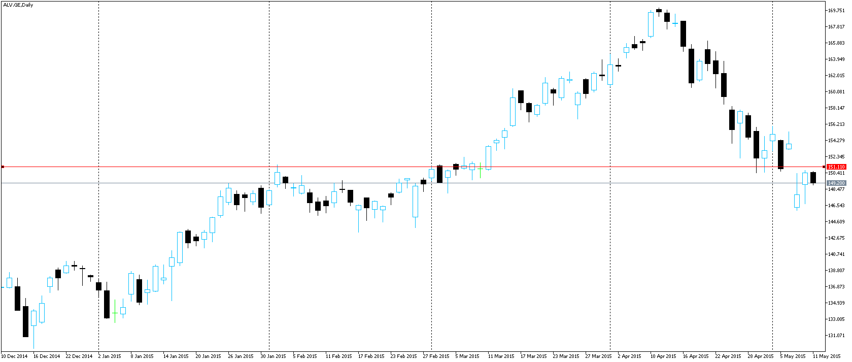 Meine Handelssoftware (MT5) rechnet die Dividenden nicht weg (Tradesignalonline macht es genauso), sie werden also als Gap angezeigt. (Bild 1, vor der 3.letzten Kerze)