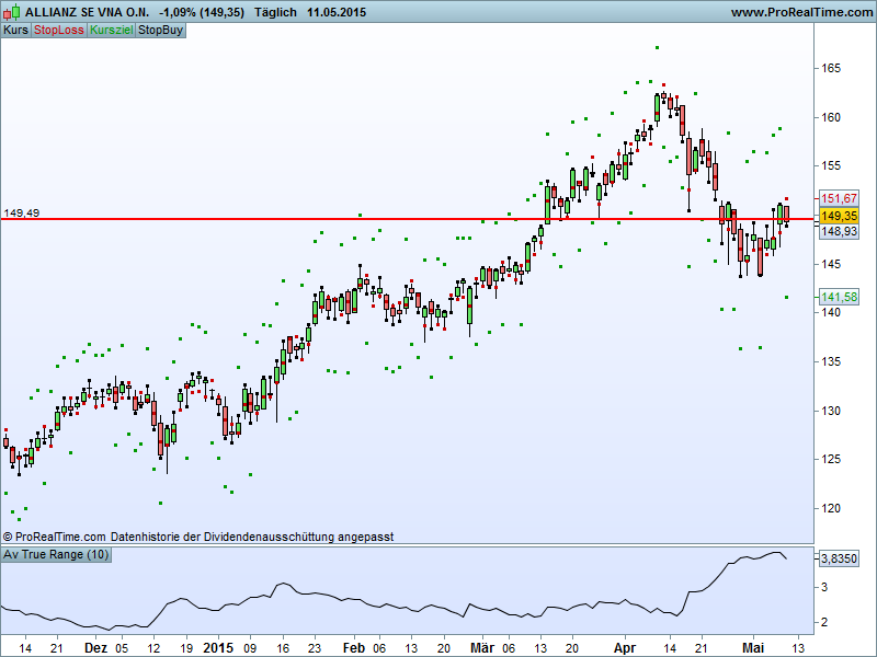 Wir handeln hier keine Nebenwerte, weil sie erfahrungsgemäß einen hohen Spread haben. Bei unseren knappen Stopps kann das nur ein Nachteil sein. Gerade im Eröffnungschaos nach 9:00 Uhr sind diese Werte unberechenbar - auch wenn sie auf dem Papier sehr vielversprechend aussehen. Auf Dauer wirst du damit nicht glücklich. Bleib am besten für den Anfang erst einmal bei DAX und CAC50.