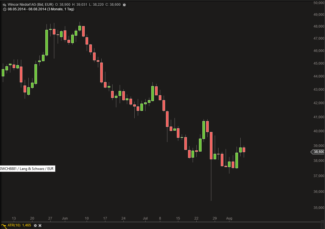 Wincor Nixdorf -> Short-Alternative, Tagestief ein klein bisschen unter dem gestrigen, dennoch ein passabler Chart