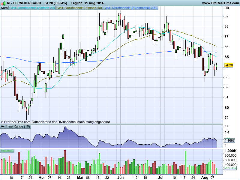Pernod-Ricard? Echt? Gefällt mir ehrlich gesagt nicht. Geht eher Richtung Abwärtstrend, Tageshoch heute höher als gestern...warum gefällt dir der Chart?