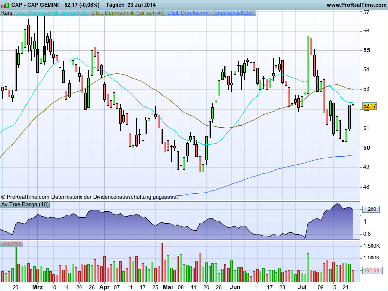 Wenn man dann bei Cap Gemini und GDF SUEZ charmant ausgestoppt wird und sonst nix zu tun hat, dann rechnet man (ich mein mich) sich aus, dass man bei Technip zwar 164 Punkte mitgenommen hat, aber bis gerade im Moment ca. 200 Punkte (mindestens bei großzügigem Trailing Stop sogar mehr) hat liegen lassen. Wenigstens weiß ich jetzt was alle immer mit "Gewinne laufen lassen" meinen. Gut, dass ich wenigstens E.ON nur glattgestellt habe und nicht gleich mit doppelter Menge in den Verkauf gegangen bin, das hatte ich mir nämlich auch noch überlegt