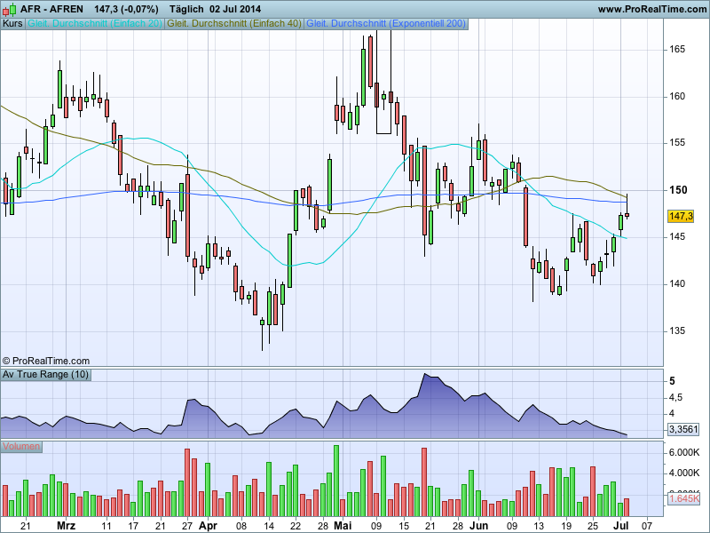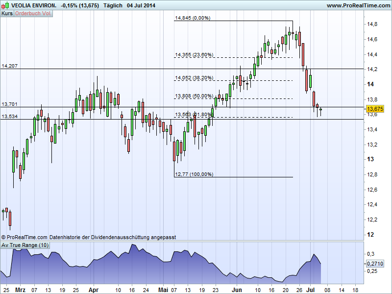 Dann müsste sich konsequenterweise auch die ATR auf den gehandelten Kursen beziehen und sich somit der