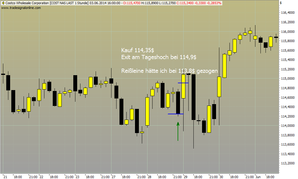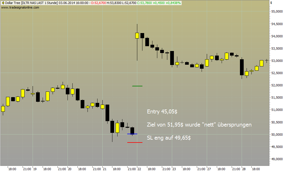 Danke für die Erläuterung. Der Einstieg klingt nachvollziehbar. Wenn ich das richtig verstehe, setzt du den SL dann unter die letzte Stundenkerze des Tages? Das heißt, du müsstest dann ziemlich kurz vor Börsenschluss reingehen, damit du deine Positionsgröße korrekt berechnen kannst, oder?