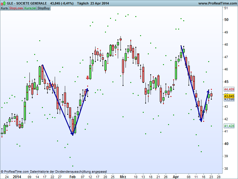 Bei Veolia stört mich der Widerstand bei 14,65. Casino Guichard mit Mini-Korrektur gefällt mir da besser.
