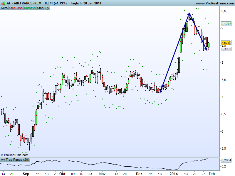 Air France für mich ist dieser Swing zu groß, es ist zu bezweifeln, dass der TP in den 5 Tagen erreicht wird