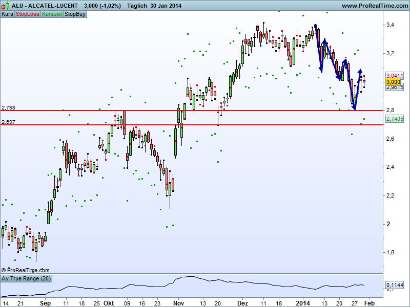Alcatel Lucent TP liegt in einer Ünterstützungszone, außerdem ist das Swinghigh schon weiter entfernt